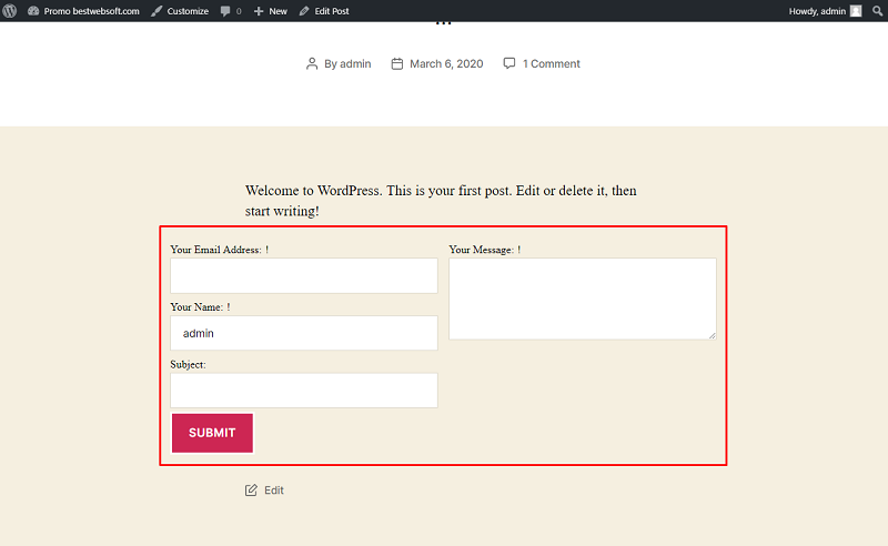 4.5.2. The “Submit” button on the “Right” will look at the contact form as follows.